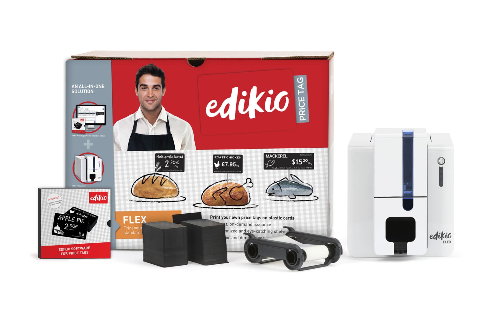 Edikio Price Tag ofrece soluciones completas listas para usar en carnicerías. Cada kit incluye: