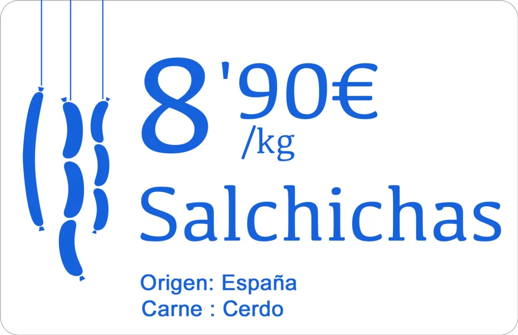 Además de valorar tus productos, un cartel bien hecho cumple una función fundamental: proporcionar información conforme a la normativa europea.