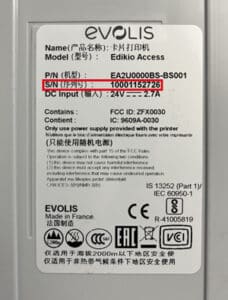 *Del número de serie 10001152726. ¡Para encontrar su número de serie: vaya a la parte inferior de su Access! Allí encontrará una etiqueta y la indicación S/N que corresponde al número de serie de su impresora: