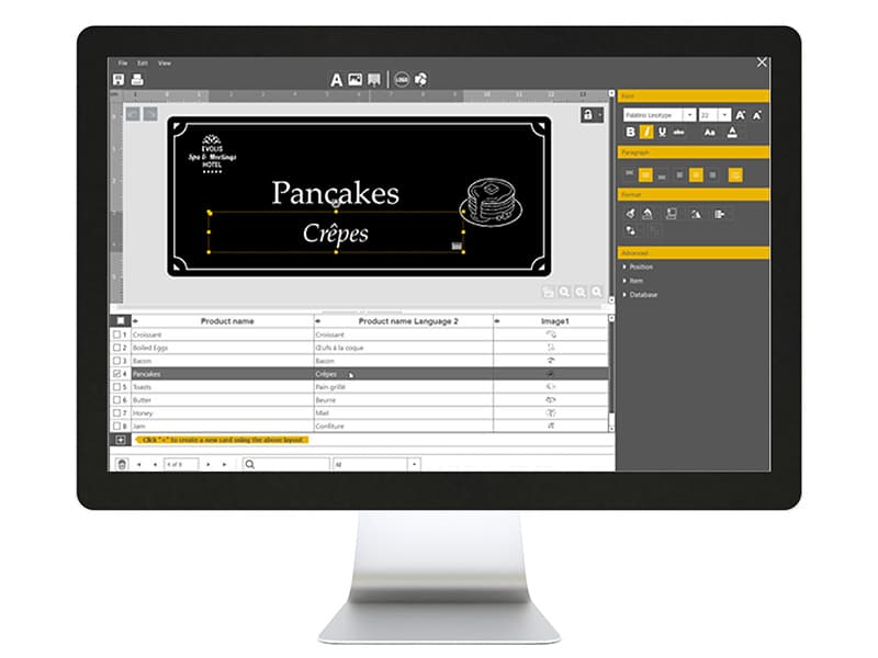 Intuitiva, práctica y fácil de usar, le permite crear rápidamente etiquetas para bufés y presentaciones de aspecto profesional.
