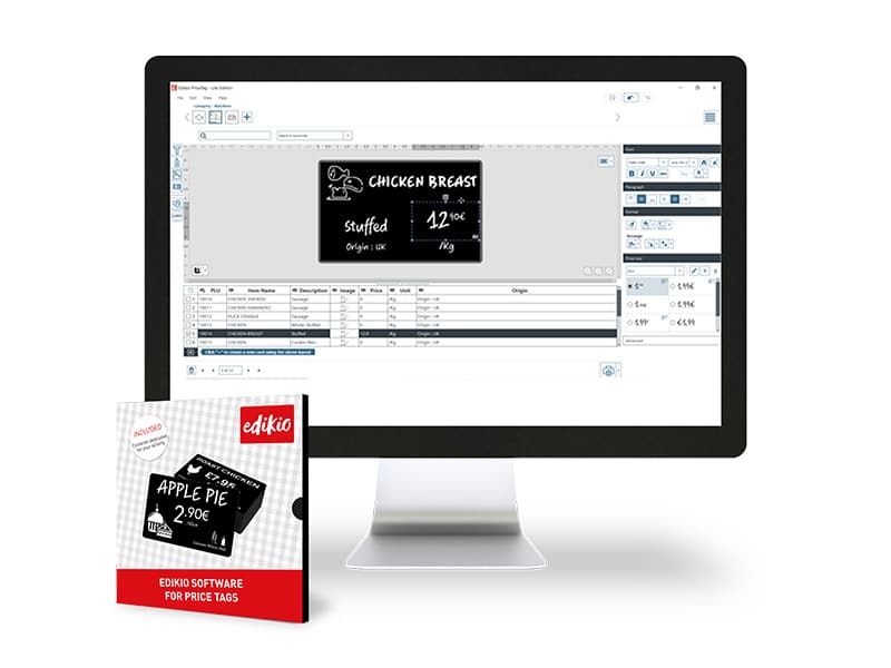 Incluido en la solución todo en uno Edikio Price Tag, el software de creación de etiquetas Edikio Price Tag ha sido diseñado para simplificar el trabajo diario de los minoristas y ahorrarles tiempo.