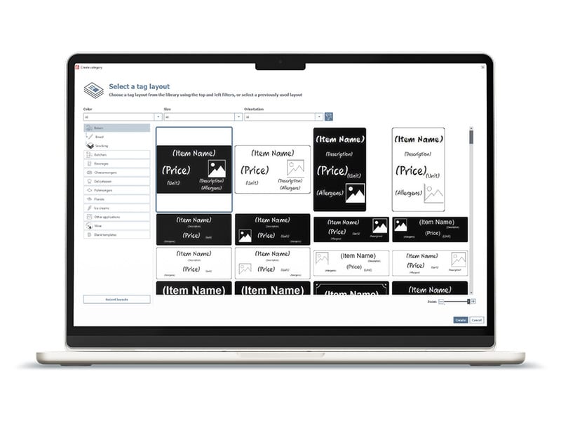 Intuitiva, práctica y fácil de usar, le permite crear rápidamente etiquetas de precios de aspecto profesional, sea cual sea su negocio.