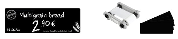 - 150 x 50 mm: el formato ideal para productos de panadería, conforme al decreto francés sobre el etiquetado del pan 78-89/P.