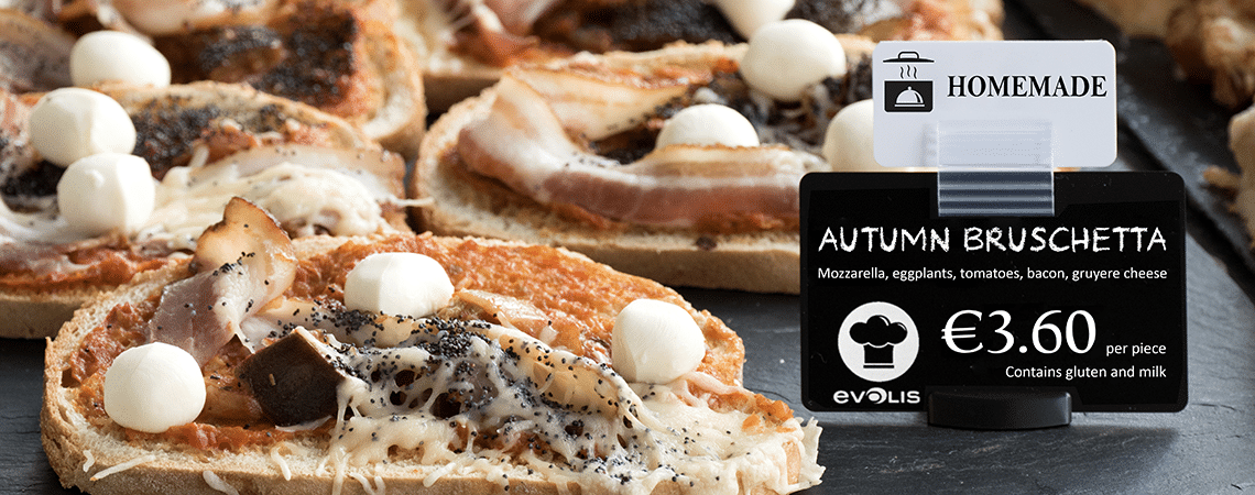 Además de mostrar información importante sobre alergias, las tarjetas de precios deben contener información detallada sobre los productos y mensajes promocionales para atraer a los compradores y comunicar el valor de sus productos. Esto puede resultar complicado cuando se dispone de mucha información y poco espacio para transmitirla.