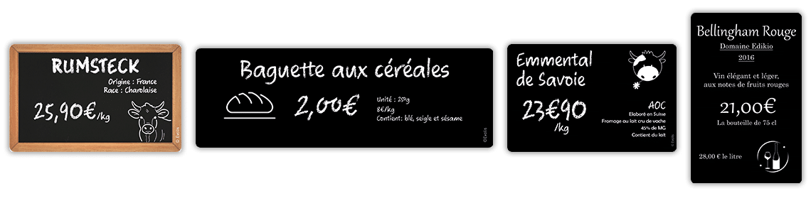 - A software de creación de etiquetas de precios que incluye una biblioteca de plantillas, listas de artículos para cada tipo de empresa y más de 400 imágenes e iconos para la presentación visual de los alérgenos.