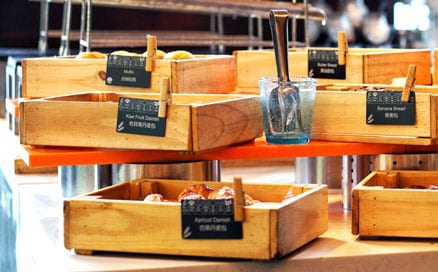 Desde la primavera de 2018, más de 300 etiquetas especiales para bufés en acabado negro mate ultrarrefinado se crearon e imprimieron para el bufé del desayuno del hotel InterContinental Beijing.