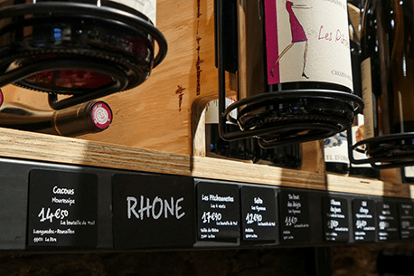 La Sra. Marquais también utiliza Edikio Price Tag para crear etiquetas señaléticas personalizadas que permiten identificar fácilmente las distintas regiones de producción de los vinos a la venta. Este sistema facilita que los clientes se orienten en la tienda.